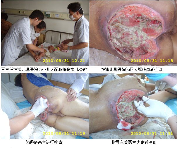 2010年8月31日,中国中西医结合学会烧伤专业委员会常委、北京美宝烧伤创疡研究所副所长、临床研究部主任王洪生教授在到广西钦州市参加2010年广西中西医结合外科、烧伤创疡、中医药外科学术年会期间,应钦州市浦北县人民医院外四科(创伤骨科、烧伤科)戚海主任的邀请,来到浦北县人民医院,对在该院住院的一位骶尾部巨大褥疮的患者和一位烧伤患者的治疗进行了临床指导。