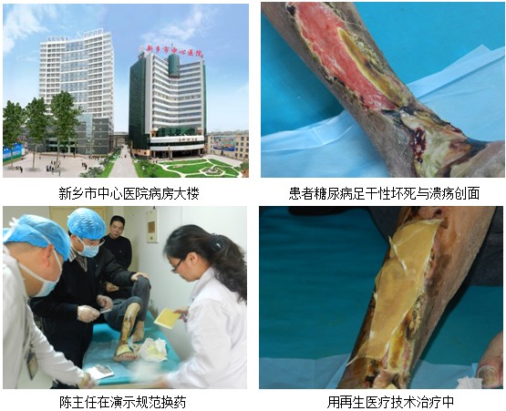 陈全喜主任边讲边展示再生技术及相关产品在临床治愈的烧伤、溃疡、难愈性创面、骨外露、褥疮、肛肠、糖尿病病例。总经理陈新军说:“知道你们的技术及产品,性能及疗效了解不深,听陈主任一讲,我们对这一领域有了新的了解,也了解了再生科学在国际上的影响,更进一步看到了再生产品的疗效。并表示希望陈主任市前往中心医院会诊一个住院半年之久、久治不愈的糖尿病足患者。