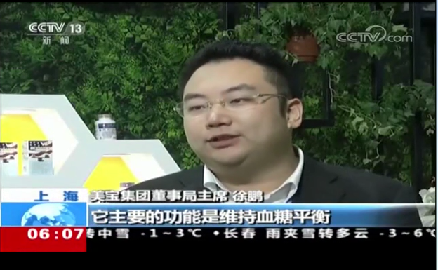 在上海举办的首届中国国际进口博览会上,中央电视台特别在美宝展台采访了美宝集团董事局主席徐鹏,特别关注了美宝生命科学公司(MEBO Life Science)核心上市产品美宝极爱胶囊及新明星产品美宝衡糖胶囊。同期播出的还有在美国通用电器全球首发的新品等。
