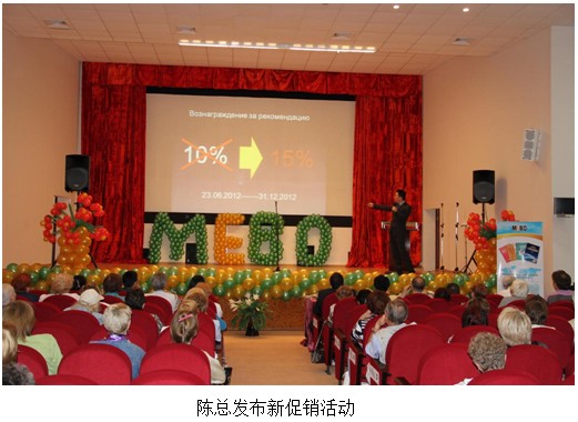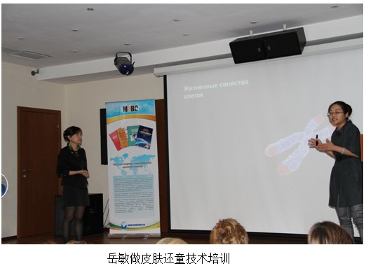 在6月23日 的庆典大会上,美宝俄罗斯公司总经理陈刚先生宣布了REME再生系列护肤品正式上市,同时发布了下半年的市场促销计划。应经销商的要求,专门请到了美宝集团仙人堂会所技术专家岳敏女士做“皮肤再生还童技术应用”培训。从再生科学和皮肤生理特性的高度,诠释了美宝REME再生系列护肤品的优点和原理。