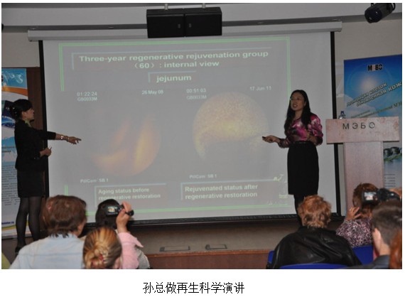 会议由美宝俄罗斯公司员工热尼亚担任主持人,共分成三个部分。首先,由美宝国际市场集团总裁、首席科学家孙霞女士以“美宝人体再生科学发展之路”为题作学术演讲,美宝国际市场集团直销总部李满主任担任现场翻译。孙总从再生科学的起源深入到再生医学原理,然后拓展到各种再生复原的应用。其中穿插大量的临床图片及视频,为到会人员递上了一份丰盛的美宝再生科学大餐。演讲过程中,经销商们目不转睛盯着屏幕,并埋头认真记录下每一处的应用要点。孙总借阐述人体再生的三个基本条件“潜能再生细胞、再生营养物质、再生环境”,解释了一直困扰经销商们关于再生营养物质进入体内如何发挥作用的疑问,演讲最后孙总代表再生科学和医学的创始者徐荣祥教授,向所有与会的,来自俄罗斯不同城市的伙伴们致意,希望通过他们的分享,将再生医学广为传播,使更多的人受益。原定2小时的演讲被延长到近3小时才在大家热烈的掌声中结束,经销商们纷纷表示孙总的讲解精辟清晰,是帮助他们开辟市场的有力武器。