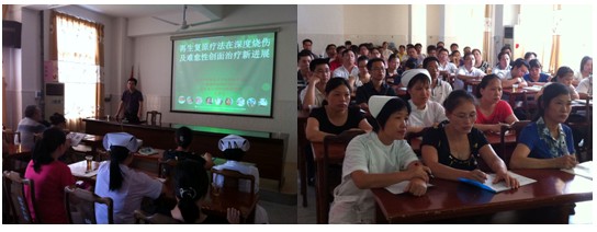 2012年6月1日下午,经茂名市卫生局批准,应该医院医务科卢科长邀请,中国中西医结合学会烧伤专业委员会常委兼秘书,北京美宝烧伤创疡研究所副所长、第二临床研究部主任,《中国烧伤创疡杂志》副总编辑王洪生研究员到该医院做“再生复原疗法在难愈性创面治疗新进展”临床专题学术讲座,参会人员有来自信宜市各级医疗单位医护代表近100人,在学术讲座中,王主任首先向与会的专家介绍了著名生命科学家、医学家、人体再生复原科学的创立者、再生复原疗法的发明人徐荣祥教授近年来在再生医学领域所取得的重大实验及临床研究成果,而后王主任结合了大量的临床病例图片及录像资料,就再生复原疗法在难愈性创疡创面治疗上的一种新方法,对不同深度的烧伤创面及各类难愈性创伤、溃疡创面的规范化处理方法与技巧、注意事项等进行了细致地讲解,并强调创面处理要大胆清创、减压、去除坏死组织,并保持创面生理的湿润环境,实现创面的再生复原,并建议对病人深达真皮层以下愈合后创面应进行防疤处理治疗。