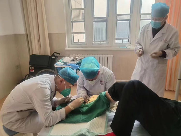 2023年1月12日,北京宣武中医医院外科张勇主任应内蒙古托克托县医院外科郝主任的邀请,对一例糖尿病足溃疡创面的患者进行了微粒皮种植手术,并就如何换药进行了规范操作,之后做了科室培训,这次会诊得到了郝主任和患者的一致好评。