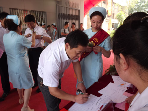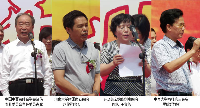 缤纷绚丽的礼炮、欢快祥和的音乐,喜气洋洋的热闹气氛,点缀出一个吉祥热烈的初夏盛典现场,开封市政协副主席蒋忠仆、开封市人大科教文卫主任王金荣、开封市人民政府副秘书长张宛红、开封市卫生局副局长呼新伟、开封空分集团公司副总经理刘威、美宝国际集团总裁杨智斌等领导出席典礼并讲话。参加典礼仪式的还有来自中国中西医结合学会烧伤专业委员会主任委员肖摩教授、河南大学附属南石医院院长赵俊祥教授、河南煤化永煤集团总医院田宗皎院长、中南大学湘雅第三附属医院烧伤科主任博士生导师罗成群教授,开封市第一人民医院李华强副院长到会并参加了剪彩仪式,来自开封空分集团等企业界、各级医院同仁、河南省电视台、开封电视台、开封日报、卞京晚报等媒体记者朋友200余人欢聚一堂,共同见证了这一美好的历史时刻。