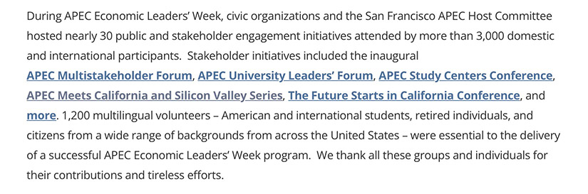 在2023年APEC会议期间,美国政府揭晓的年度APEC成果亮点中,APEC硅谷论坛赫然在列,作为一项举足轻重的成就被特别提及。APEC2024硅谷峰会作为APEC2024“APEC为人民”框架下的一项重要官方活动,将于当地时间11月9日在秘鲁首都利马举行,此次峰会由湾区委员会与美宝国际联手举办。作为连续两届APEC峰会的重要战略合作伙伴,美宝国际一直致力于推动亚太地区的科技合作与发展。峰会上,与会者将共同探讨如何通过科技创新应对全球性挑战,推动可持续发展。