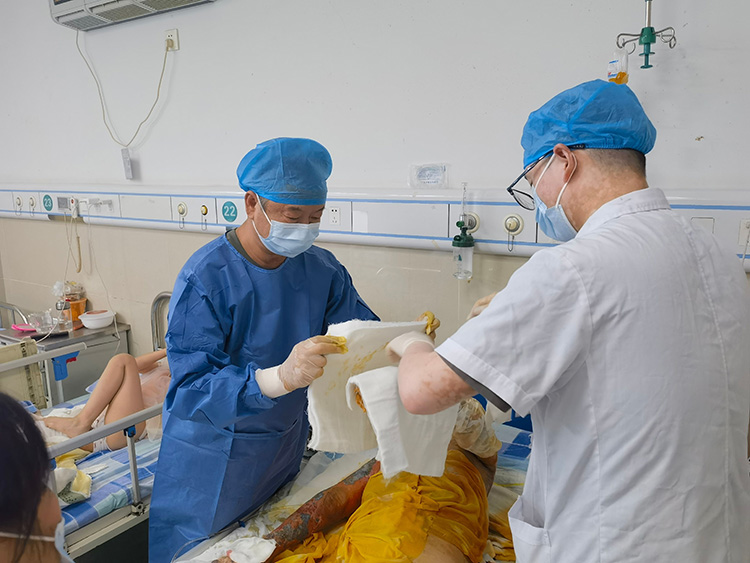 2024年9月9日-10日,《中国烧伤创疡杂志》编委、烧伤创疡再生医疗技术临床专家张强教授应邀来到南京鼓楼医院集团安庆市石化医院烧伤科,对该院最近收治的多例大面积烧伤病人会诊,并现场示范规范换药,受到医患双方一致好评!