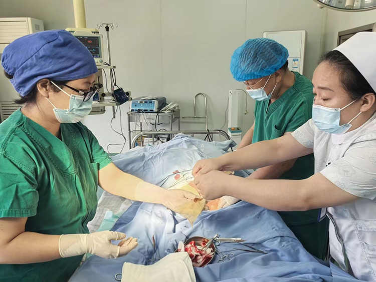 9月11日,应解放军联勤保障部队982医院邀请,《中国烧伤创疡杂志》常务编委、烧伤创疡再生医疗技术临床专家赵瑞庆,在该院会诊了一例大面积烧伤患者、糖足溃疡、压疮等七例慢创患者。针对一例会阴部深筋膜感染、一例糖尿病足五级深部感染严重患者进行了手术治疗。事后在示教室又进行了《再生医疗技术治疗糖尿病足》专项技术培训,受到该院医护人员的认可与好评。