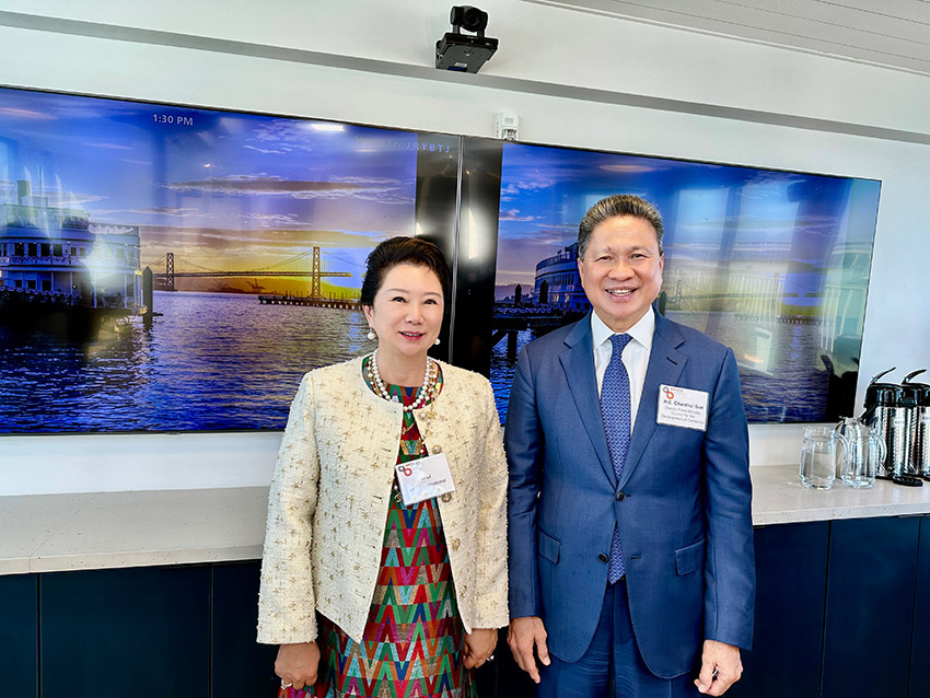 2024年9月23日正午时分,加州湾区委员会在位于其总部克拉马斯号(Klamath)顶层美宝花园的主会议室内,以一场温馨而庄重的午餐会,热情接待了柬埔寨副首相孙占托阁下率领的代表团一行。美宝集团董事局李俐代表董事长徐鹏(湾区委员会执行董事兼国际委员会主席)与湾区委员会经济研究院院长肖恩·伦道夫作为东道主共同主持接待了代表团一行,展现了湾区委员会对国际伙伴关系的重视与期待。