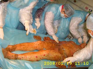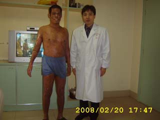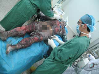 广西贺州市中医院是贺州地区唯一一家三甲医院,同时也是贺州市急救中心所在地。2008年1月5日晚7时20分该医院急诊收入一例因炮竹爆炸造成全身大面积烧伤的患者。