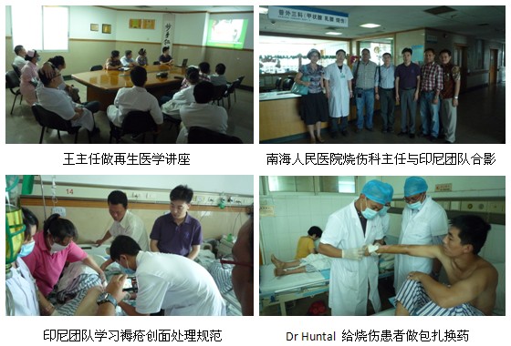 7月6日,在王主任的带领下,印尼团队又赶赴广东省南海人民医院进行创疡病例的参观学习。该家医院也是再生医学技术的基地医院,应用在烧伤及创疡方面的治疗广泛。在医院烧伤科李民主任的带领下,印尼医生们参观了用再生疗法治疗多发性、深度褥疮病人的换药规程。随后,王主任向印尼医生及该科室医护人员进行了系统的再生医学讲座,使医生们获益匪浅。
