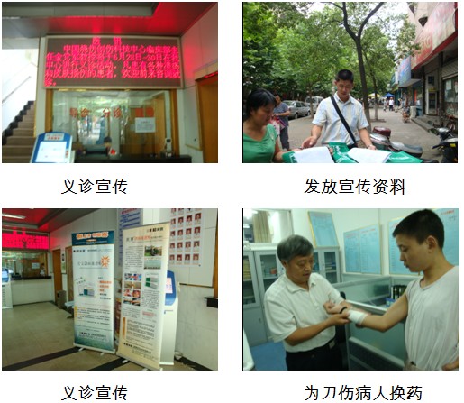 中国中西医结合学会烧伤专业委员会常委、北京烧伤创疡研究所临床医疗部金党军教授应湖南长沙望月湖社区卫生服务中心盛邀,于2009年6月28日—30日在望月湖社区服务中心进行义诊活动。湖南办事处望美玲和方昆鹏发放了宣传资料,对家中有各种溃疡和皮肤损伤的患者可前来就诊,把再生医疗技术更好更快的普及到基层惠及到广大群众。