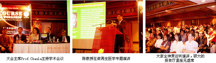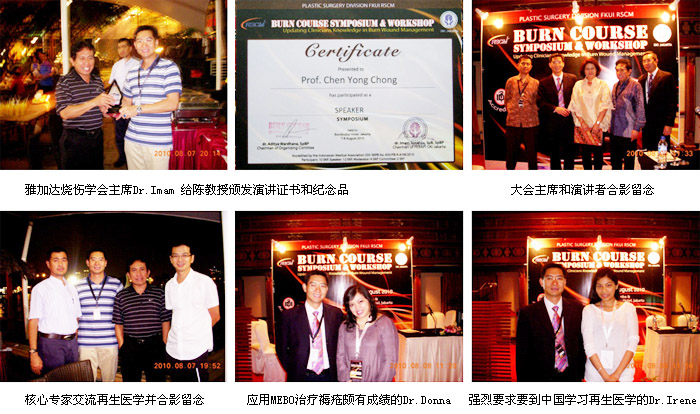 经过整整1年的组织和筹备,由印尼烧伤整形外科学会主办、印尼大学Cipto医院(印尼最大的医院,2000张病床)承办的“2010年印尼烧伤整形学术大会”,于2010年8月6日至8月8日,在印尼首都雅加达市的Borobudur Hotel的会议中心成功召开。这次大会的主题是“Updating Clinicians Knowledge in Burn Wound Management” (临床医师烧伤创面治疗知识更新) ,来自印尼全国20多个省、市和地区的300多名烧伤整形外科医生、普通外科医师和护士参加了本次大会。中国烧伤创疡科技中心临床部主任、北京荣祥再生医学研究所副所长、北京中西医结合学会烧伤专业委员会副主任委员、中国烧伤创疡杂志社副社长陈永翀教授应印尼烧伤整形外科学会和大会组委会正式邀请了出席本次大会并做专题演讲,演讲引起了强烈的反响和轰动。同时,为了进一步确保参会效果,在美宝集团国际部的总体策划和安排下,美宝在印尼的合作伙伴Combiphar公司作为本次大会的主赞助商,在大会现场精心设计和布置了大型的MEBO烧伤再生医学展台,美宝国际集团国际市场部的印尼区域经理吴云则为大会带来了最新的再生医学资料并积极地向临床医护人员介绍再生医学技术和产品,再生医学与产品很受各位参会代表的追捧。再生医学专题演讲和个性独特的MEBO展位在大会上绽放光彩!