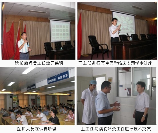 2011年06月14日,中国中西医结合学会烧伤专业委员会常委、中国烧伤创疡杂志社副总编辑、北京烧伤创疡研究所副所长、临床部主任王洪生研究员应邀到该医院以“再生复原疗法疗法在烧伤及难愈性创面临床规范化应用及新进展”为题进行了专题讲座。该院外科、烧伤整形外科、骨科、神经外科以及内科等医护人员参加了讲座,在学术讲座中,王主任对就烧伤及各种难愈性创伤,溃疡创面的规范处理方法与技巧并结合临床图片做了详细地讲解。