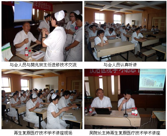 2011年8月3日,天津市汉沽区医院特邀请了中国中西医结合学会烧伤专业委员会、北京美宝烧伤创疡研究所专家樊兆宗主任为该医院骨伤科、外科、内科、妇产科、感染科、护理部等17个科室共90名医务人员进行学术讲座。吴院长主持了关于“人体再生复原医疗技术在多学科临床应用”学术讲座的开办仪式,随后樊教授向大家介绍了徐教授发明创建的“人体再生复原医疗技术”及其“再生系列产品”的功能,并利用大量的临床图片资料和国内、外临床应用再生复原医疗技术治疗的真实病例,详细地向大家讲解了人体再生复原医疗技术治疗各种难愈性创面、断指再生的机理,对于各种烧伤的治疗也做了重点介绍,另外还介绍了徐教授创立的人体再生复原医疗技术在各学科的应用和研究,及各种创面伤的规范换药流程、处理方法、注意事项及美宝产品在临床应用的疗效。樊教授还对与会的医生提出的问题给予了解答。此次学术讲座深受医务人员的欢迎,使医院医生对再生医疗技术有了更深刻地认识,提高了医生的医疗技术和治疗水平,解决了医生临床遇到的难题。大家表示希望以后有更多机会接受再生复原医疗技术的专业培训,更好地服务于更多患者。