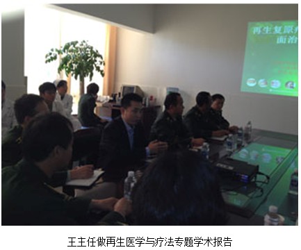 2012年11月15日下午应该院及外科韩新明主任的邀请,中国中西医结合学会烧伤专业委员会常委兼秘书、《中国烧伤创疡杂志》副总编辑、北京烧伤创疡研究所副所长、临床部主任王洪生研究员到该院进行 “再生疗法在难愈性创疡创面治疗新进展”专题临床学术讲座。 当日下午15时,在该院外科会议室,全院外科系统的骨干、妇产科及内分泌科的医护人员到会聆听王主任的专题讲座,该院外科韩主任全程主持会议。该院蒙院长及医务部主任亲自参加了会议。该院外科韩新明主任全程主持了学术讲座,在专题学术讲座中,王主任结合了大量的临床病例图片,主要针对各类难愈性创伤、溃疡创面的规范化处理方法与技巧、注意事项等进行了细致地讲解,活动持续到下午17时30分才结束。 会后,该院外科主任韩主任在与王主任的交流中表示,王主任的精彩讲座,令人受益匪浅,对于基层医生,特别是很多外伤官兵的部队医院来说,这种方法简单又实用。该院烧伤基本都是使用烧伤皮肤再生医疗技术,但没想到再生技术在难愈性创面还有如此独特的治疗效果,今后定将更好的掌握。
