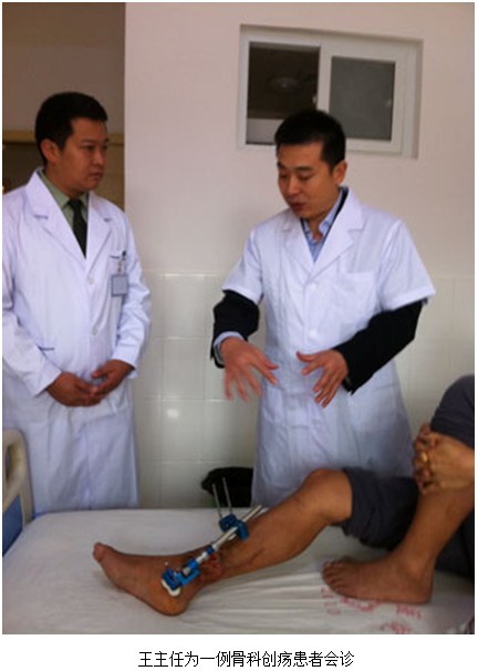 2012年11月16日上午,王主任应邀再次到该医院外科,在该科韩新明主任、主管医生董明林硕士等医生陪同下为在该科住院的一例右小腿内侧骨科创疡行筋膜瓣术后并筋膜瓣坏死患者进行了会诊和临床指导。
