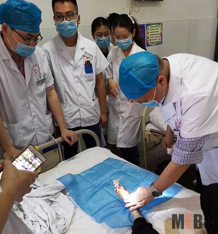 6月24日,北京荣祥再生医学研究所副所长、《中国烧伤创疡杂志》编委金党军主任,应邀来到宜春市中医院,在钟主任和彭主任的陪同下为溃疡、糖尿病足,烧烫伤患者会诊,并给医护人员们现场亲自示范再生医疗技术规范换药流程,患者万分感激。大家也将平时临床换药中遇到的问题同金主任做了详细沟通,大家对金主任指导教学表示了感谢,相信再生医疗技术会让更多患者受益!