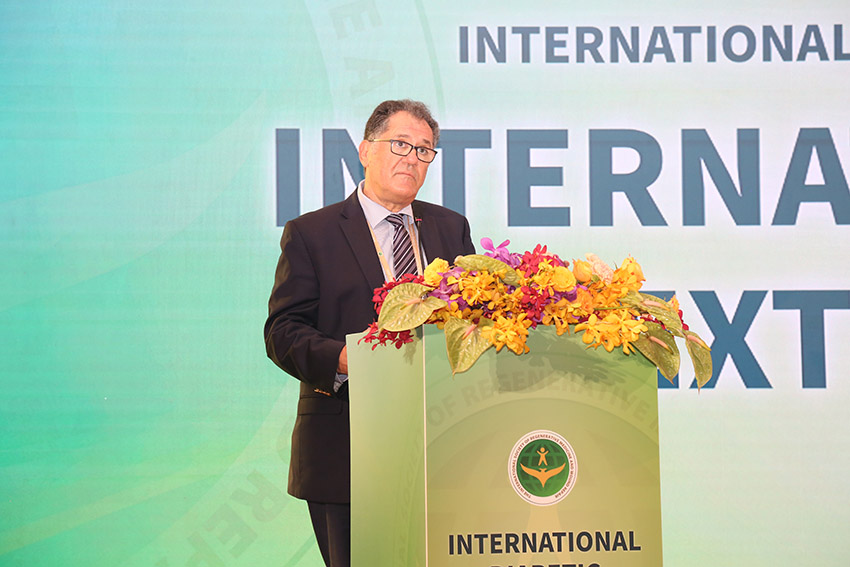 哈佛大学医学院教授、BIDMC徐荣祥再生治疗中心主任阿里斯蒂迪斯·维维斯作为此次大会主席致辞,他对历经三年疫情在泰国举办此次学术会议感到由衷喜悦,并期待通过2023年国际糖尿病下肢病变会议的召开能给与会者带来一些新的启发和想法。作为一所享有盛誉的医学研究机构,徐荣祥再生治疗中心一直致力于推动再生医学和创面修复领域的科研与创新,还通过资源资助、培训和支持发展中国家建立足病学科和创面治疗中心。
