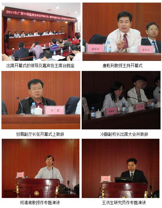 甘霖厅长在大会开幕式上致辞,指出此次会议不仅为我们提供了一个交流中医学、中西医结合医学的良好平台,也为我们提供了一个共议广西中西医结合医学发展的平台。在此基础上,希望大家共同学习、交流各医院的先进经验和先进理念,加快我区中医、中西医结合事业的发展步伐,提高中西医结合外科的诊疗水平,为患者提供更好的服务。开幕式上,百色市人民政府赵桂兰副市长、广西中医学院副校长冷静教授还分别代表百色市人民政府和广西中医学院发言,向大会表示祝贺。