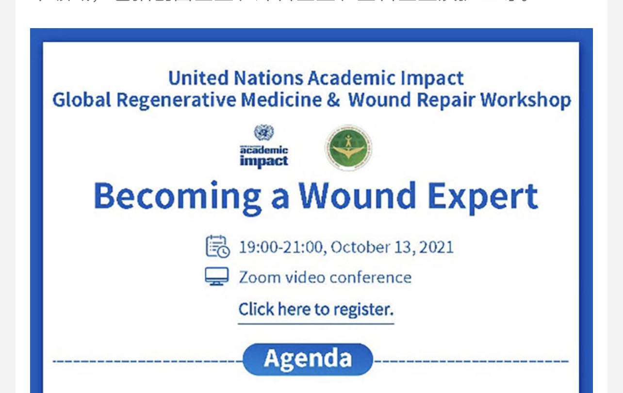 2021年10月14日,由国际再生医学与创面修复学会主办的联合国学术影响力国际再生医学线上培训活动顺利举行。