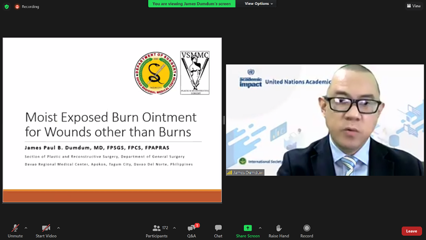 最后一位讲者是来自菲律宾Davao医疗中心的创面重建与整形外科医生Dr. James,他的主要研究方向为再生医学与烧伤创面重建。在《应用再生医疗技术进行创面治疗》的演讲中,他不仅分享了一例高压电导致全层头皮缺损的严重病例,还分享了多例不同类型创面的治疗,充分展示了再生医疗技术在创面治疗中的优势。