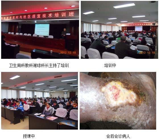 2012年12月18日应湖南省株洲市卫生局的邀请,北京烧伤创疡研究所金党军教授前往株洲市参加了由株洲市卫生局主办的株洲市基层医疗适宜技术培训。金党军教授主要讲解了再生复原技术。市卫生局科教科领导以及来自株洲市区所属辖区内的基层医务人员180人参加了培训,卫生局科教科谢琼科长主持了此次培训。
