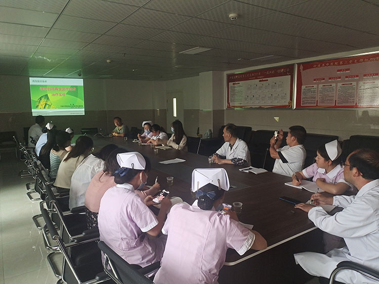 2024年6月4日,《中国烧伤创疡杂志》编委、烧伤创疡再生医疗技术临床专家张强应邀到访竹溪县中医医院医养中心做《烧伤创疡再生医疗技术治疗压疮》专题讲座与经验交流,会后就创面用创疡再生医疗技术和传统治疗方法的不同等话题与科室医护人员进行了探讨。之后会诊了一例足后跟底压疮患者,张主任亲手示范创疡再生医疗技术规范换药,边操作边详细讲解操作规范,就后期换药向医生提供了建议方案。此次讲座让大家对再生医疗技术有了更深的认识,在以后的临床中更好地造福病患!