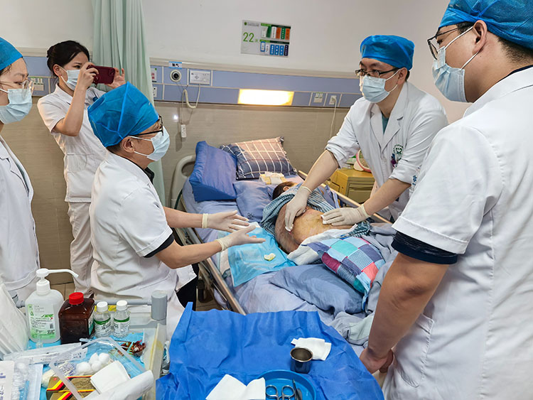 2024年6月5日,中国中西医结合学会烧伤专业委员会常务委员、《中国烧伤创疡杂志》副总编辑王洪生,应邀到中山市人民医院黄圃院区对一例难愈性创面的患者进行会诊,并亲自清创及换药,示范再生医疗技术在临床的规范化应用,受到医患双方一致好评!
