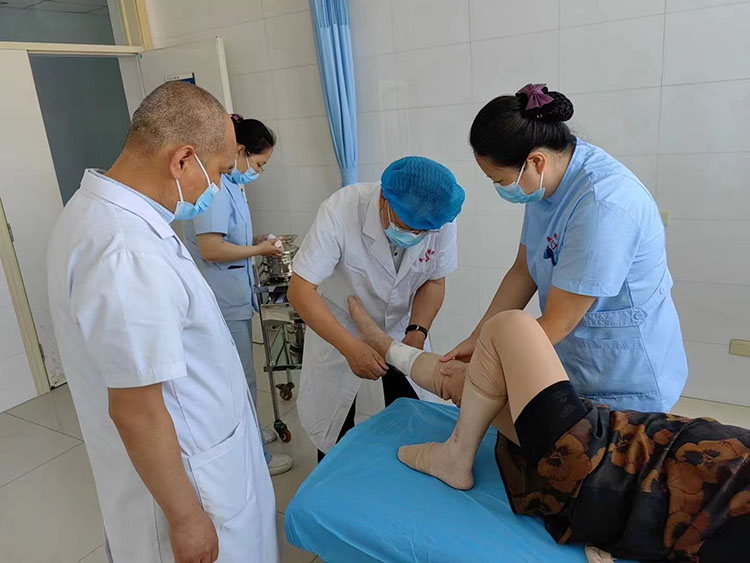 2024年6月12日,应高平市民生烧伤专科医院,上党区中医院之邀,《中国烧伤创疡杂志》常务编委、烧伤创疡再生医疗技术临床专家赵瑞庆,分别在上述医院会诊了七例患者(血管性溃疡1例、下肢慢创1例、烧伤4例、坐骨结节处压疮1例)。其中压疮患者为截瘫三年、压疮二年,在外地治疗未见好转,赵教授为患者行压疮扩大切除加臀下缘随意皮瓣旋转推进术,手术顺利,患者安返病房。