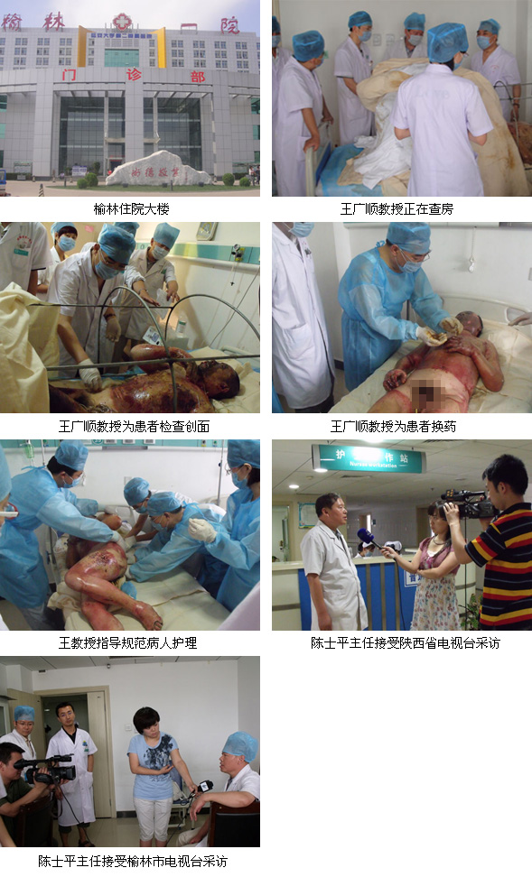 该院烧伤科陈士平主任在接受患者后第一时间与北京中国中西医结合学会烧伤专业委员会请求技术援助,随后中国中西医结合学会烧伤专业委员会王广顺教授、陕西省中西医结合学会烧伤专业委员会刘华主任及榆林地区技术主管闫鑫三人连夜凌晨两点多赶到了榆林市第一医院。在查看烧伤病人后,王广顺教授就有关烧伤救治方案做了具体的安排部署,要求统一服从医疗救治小组的安排,普外科、内科、急诊科、医技科、药剂科以及后勤保障科等积极配合,为医疗救治提供足够的人员保障;医技科,药剂科确保临床所需;后勤部门做好后勤保障工作。目前该批病人虽处于危险期,但经过及时抢救病情相对稳定。此次事件陕西电视台、榆林电视台在第一时间做了报道,我们也将继续关注这批病人的救治情况。