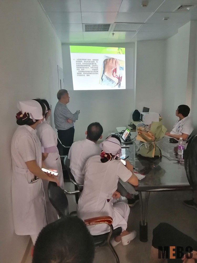 2021年5月12日,应骨科陈国富主任邀请,再生医疗技术走进芜湖繁昌县人民医院骨科,张强主任为广大医患人员主讲了一期科室培训及钢板外露病例会诊。参会人员对张主任表示感谢,规范的换药技术和换药技巧让大家受益匪浅。大家表示以后遇到创面换药 特别是难愈合创面患者,就更有底气和信心运用再生医疗技术将创面治愈成功,未来将带着这项技术造福更多人群。