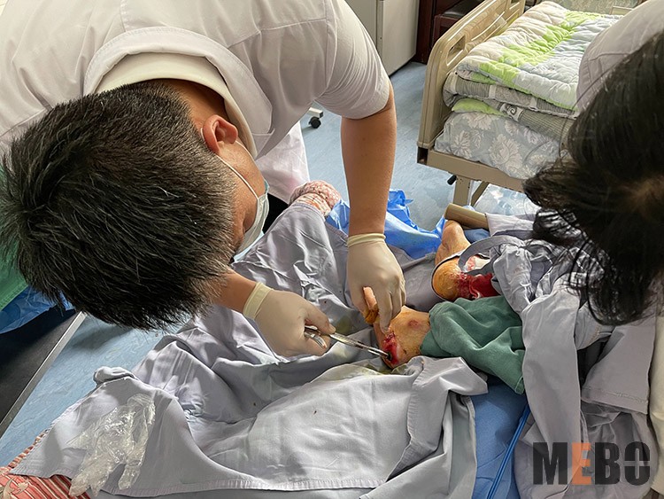 2021年5月12日, 应南昌大学附属三三四医院外科钱主任和万医生邀请,北京荣祥再生医学研究所副所长、《中国烧伤创疡杂志》编委金党军前往该科室对一名糖尿病足患者进行会诊,并亲自给患者进行清创换药,示范再生医疗技术治疗糖尿病足患者的规范操作,并给出了很多专业的后期处理建议,钱主任万医生对金教授的到来表示了高度感谢,也对再生医疗技术治疗慢创有了更深的认识。