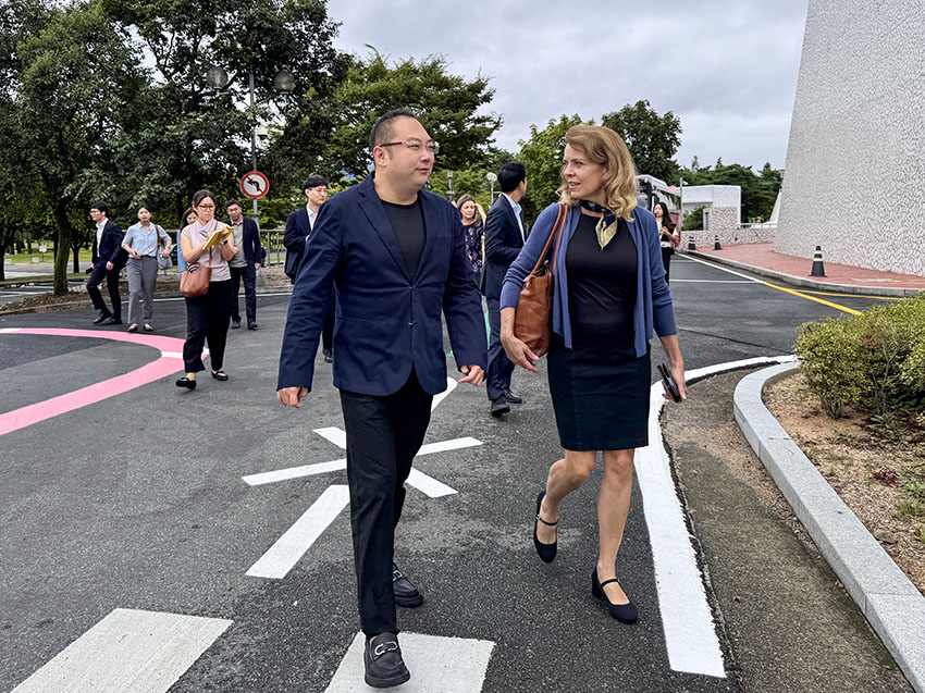 2025年9月10日,美宝集团董事局主席、前APEC筹委会主席徐鹏应邀与APEC中心副总裁芭芭拉一行,会同APEC工作组成员及多位参会代表,前往韩国庆州艺术中心开展2025年APEC CEO峰会场馆巡馆工作,实地检查峰会筹备进展。