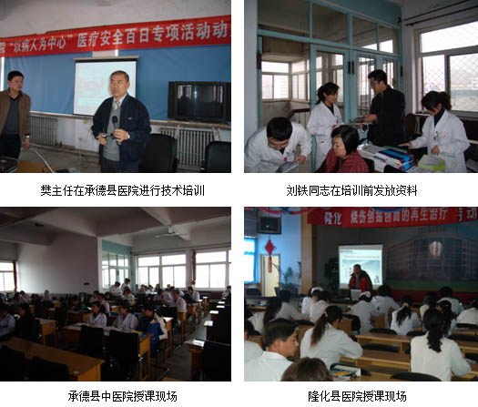 中国中西医结合学会烧伤专业委员会河北办事处在王琳琳主任的安排下,由负责承德地区刘铁同志和负责廊坊地区娄少东同志分别组织了皮肤器官原位再生复原技术深入推广活动,分别于3月12日、13日、17日在承德县医院、隆化县医院、三河市中医院举办了院级再生医疗技术规范应用培训班。参加培训的医务人员全部来自三个医院各个科室的临床一线人员共200余人,通过这几天的培训工作将所在医院的皮肤器官原位再生复原技术在多学科的应用以及其配套产品速愈贴的临床应用知识得到了很好的推广普及,广大医务工作者对再生医疗技术非常欢迎,很多人在培训时结合临床上碰到的疑难问题,纷纷向樊兆宗主任进行咨询,经过樊主任的耐心讲解,大家对原位再生复原技术以及相配套的产品都有了很深的了解并且产生了浓厚的兴趣,会后樊主任还到病房结合病人指导临床医生用再生疗法换药,使技术推广工作取得了很好的效果。