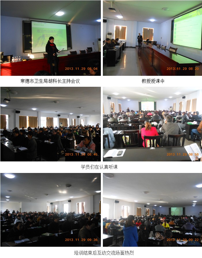 2013年11月29日中国中西医结合学会烧伤专业委员会常委、北京烧伤创疡研究所副所长、《中国烧伤创疡杂志》常委编委金党军教授,应邀来到美丽的常德市。常德市卫生局组织了常德市区、临澧县、汉寿县、津市、石门县、桃源县、澧县各乡镇卫生院及社区医院骨干医生进行适用医疗技术培训班!参加培训的单位及人员达到200人!金党军教授在常德市警官培训学校的会议室对参会的200人进行了皮肤原位再生医疗技术在治疗难愈性创面领域的培训。金教授讲到 “人体再生复原科学”是中国生命科学家徐荣祥教授创立的,而皮肤原位再生医疗技术在临床已成为一项成熟的国际性技术,用于治疗各类烧伤创面、皮肤溃疡创面、糖尿病坏死足创面、周围血管病创面、动脉闭塞症、血管狭隘性的诱发的创面、各种难愈合性创面、断指创面、挤压创面和外伤感染性创面、新鲜创伤创面等。金党军教授深入浅出的理论演讲,大量真实病例图片的疗效展示取得了很好的现场效果,听课的医师被人体皮肤原位再生医疗技术所震惊。