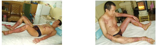 过我院全程系统应用烧伤皮肤再生医疗技术,在抢救小组40余天的精心治疗和护理下,患者贾新权已痊愈,而且所有创面愈合无疤痕,各关节活动自如无功能障碍。从入院至今40余天时间里,动态观察其创面愈合发现:浅Ⅱ°、深Ⅱ°、浅Ⅲ°、深Ⅲ°创面分别在7天、14天、30天、40天无疤痕愈合,以真实的临床实践证实了烧伤皮肤再生医疗技术比传统的烧伤外科医疗技术具有无比的优越性,患者痛苦小、创面愈合快、无疤痕。