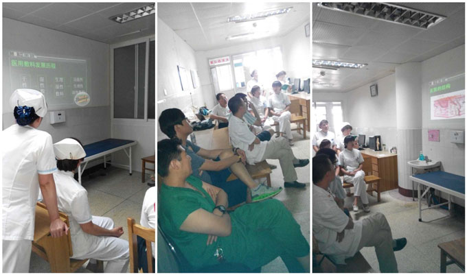 应烟台山医院的邀请,2014年7月9日下午北京烧伤创疡研究所副所长赵瑞庆教授在该院举办了一期多科室烧伤创疡再生医学与疗法培训班。参加培训的医务人员主要来自运动医学科、手外科、创伤二科、骨肿瘤等科室的业务骨干。赵瑞庆教授在培训班上做了《21世纪湿性医用敷料的新进展》的讲座。着重介绍了外科敷料的发展过程,干性敷料湿性敷料临床运用的对比,分析了干性敷料存在的缺陷。重点叙述了医用复合敷料(创疡贴)的作用机制临床运用五大优势(改善微循环学等)。三隔离临床效果,在创面修复过程中的液化机制。