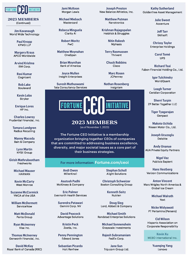 此次位列财富CEO倡议2023年名单还包括米其林、联邦快递、罗素、辉瑞、强生、诺华、联想集团等500强企业CEO。