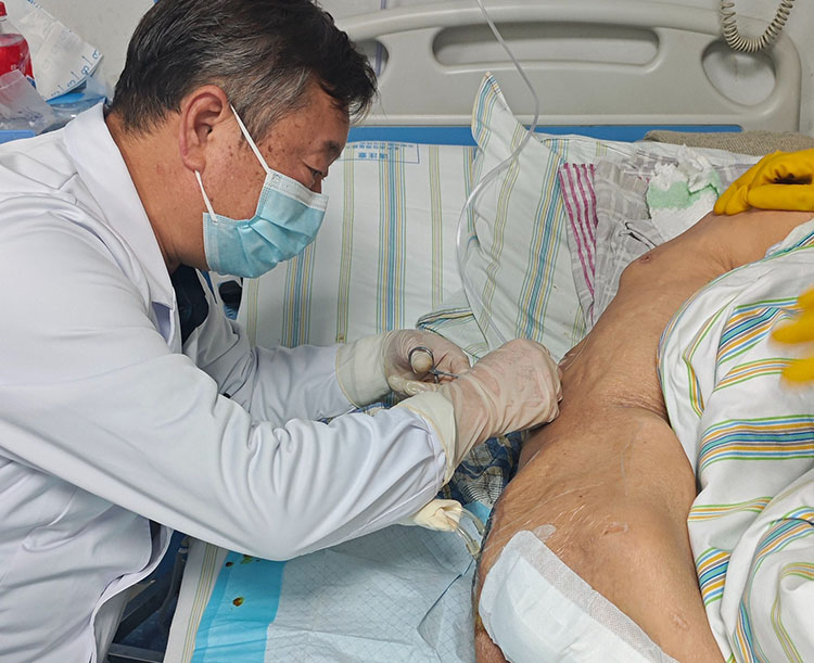 1月15日,《中国烧伤创疡杂志》编委、烧伤创疡再生医疗技术临床专家张强教授来到湖北省孝感市孝南区湖北航天医院会诊病人,对两例压疮患者现场运用再生医疗技术换药,讲解换药细节,推动技术在该院的传播运用,为后续深入合作打下基础。