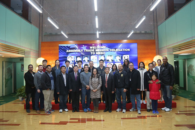 2016年11月12日,美国加利福尼亚州众议长安东尼•兰登(Anthony Rendon)、美加州众议员周本立(Ed Chau)、克里斯•霍尔顿(Chris Holden)、安德林•纳扎里安(Andrin Nazarian)、丁右立(Phil Ting),美国美华友好协会主席冯振发(Simon Pang)、秘书长于洪(Helen Yu)及皇佳商业银行董事长兼执行总裁田诒鸿(Alan Thian)等一行参观访问了美宝国际。美宝国际副总裁杨智斌、张倩、陈宝琪及董事局顾问冯皙接待了访问团。