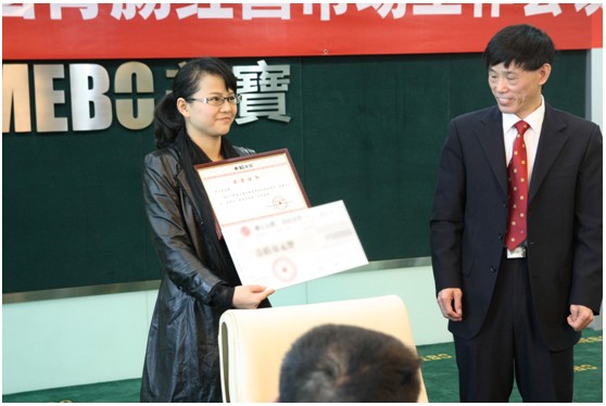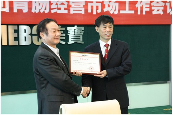 上午会议一项重要议程是给在2012年经营中取得突出成绩的省区代表颁发奖状、奖金和奖品,当获得“最佳业绩奖”的四川总经理罗天铭、获得“最佳新秀奖”的黑龙江总经理杨中端、获得“最佳进步奖”的湖南总经理龚光春,从陈宝琪总裁手中接过荣誉时,全场响起了祝贺的掌声和赞许声。