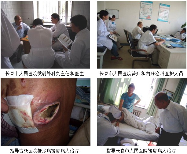 二道区人民医院是长春市区级医院,本次主要对普外科、妇科、门诊外科、皮肤科医生和护士长进行了再生技术培训,并进行现场提问,樊教授为医护人员解决了多方面皮肤破溃疑难问题。吉柴医院是长春地区的基层医院,这次培训在刘院长的支持下,内科、外科的医护人员参加了培训,对再生技术的使用起到很好的指导作用。本次主要解决了该院褥疮病人创面难愈合的难题,会后樊教授亲自指导内科护士长糖尿病褥疮病人创面的处理方法。吉林地矿医院是市区的基层医院,通过对内科和外科医护人员的培训让再生医院技术在该院得到认可,并指导了创面速愈贴的使用方法,得到医护人员的一致好评。长春市人民医院是长春地区的二级甲等医院,本次分别在微创外科、普外科、内分泌和泌尿外科进行了技术培训。樊教授与普外科陆主任和微创外科刘主任就各类创面的治疗方法进行了深入的交谈,确定了再生医院技术在糖尿病溃疡、褥疮及其它难愈性破溃伤中的治疗方法,让科室主任对各类创面处理找到了新的方法。
