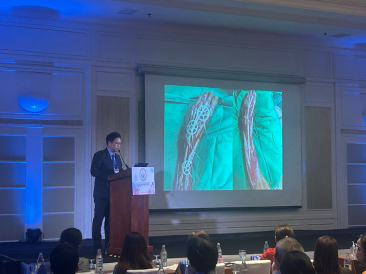 本次大会特邀权威专家团分别针对深度烧烫伤、创面管理以及慢性难愈性创面治疗三个核心主题进行了从理论到实践的系统分享。在烧烫伤创面治疗与管理领域泰国烧伤专家Dr Pomprom重点介绍了烧伤湿润疗法,特别强调了该项技术在创面以及创口恢复期的感染控制、创面修复速度以及疤痕预防方面的临床实践应用优势。