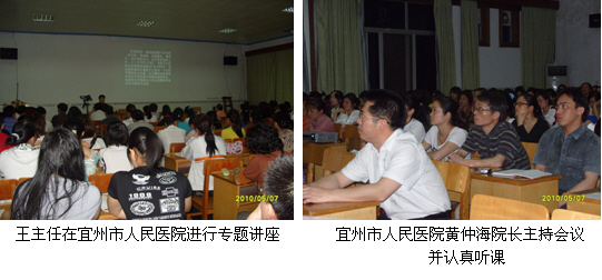 当日晚上7时30分,宜州市人民医院行政楼五楼会议室座无虚席,全院各科室除值班医护人员外,全部到会聆听王主任的专题讲座,该院黄仲海院长主持了学术讲座,会议中,王教授结合了大量的临床病例图片,主要针对不同深度的烧伤创面及各类难愈性创伤、溃疡创面的规范化处理方法与技巧、注意事项等进行了细致地讲解,在讲到再生疗法在糖尿病足的应用时,王主任特别介绍了该院在2009年采用再生医疗技术治愈的一例外院判定需要截肢的糖尿病足的典型病例,与会的医护人员都被良好的治愈效果所震撼。黄仲海院长在王主任讲课结束后的总结发言时,特别讲到该院的发展需要不断地引进先进技术,使更多的糖尿病足患者免受截肢之痛,该院要不断树立这样的品牌形象,讲话中,黄院长还对该院治愈的糖尿病足患者的所在科室及经治医生进行了褒奖,并在全院大会上宣布他会于5月20日带领该医生和该院治愈的这例糖尿病足患者一同到北京参加第十一届全国烧伤创疡学术会议和第二届创疡康复明星评选。