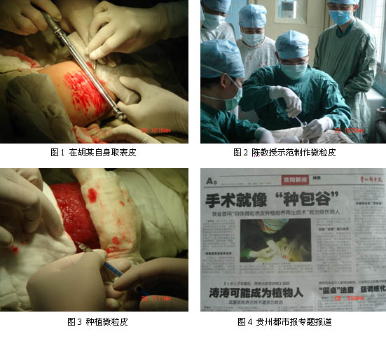 2007年6月26日上午,右腿大面积深2度烧伤的男子胡某被推进贵阳市第六人民医院的手术室,中国中西医结合学会烧伤专业委员会陈永翀教授与市六医外科主任董建军联手,采用“自体微粒皮种植再生技术”,取下胡某自身两毫升表皮制成酱状后,用针头将“皮酱”植入用烧伤膏培育了一周的肉芽创面中,完成了自体微粒皮的种植。