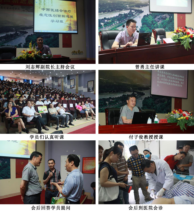 都江堰市中医院刘志辉副院长总结会议,宣布学习班圆满结束。会议结束后很多学员们围绕着付子俊教授不断请教问题,付教授一一详细解答。都江堰市405医院石刚院长则迫不及待的申请付教授立即到该院会诊一创面难愈性患者,付子俊教授不顾讲课疲惫,在石院长和医护人员陪同下立即到该院会诊了患者,并认真制定了治疗方案。