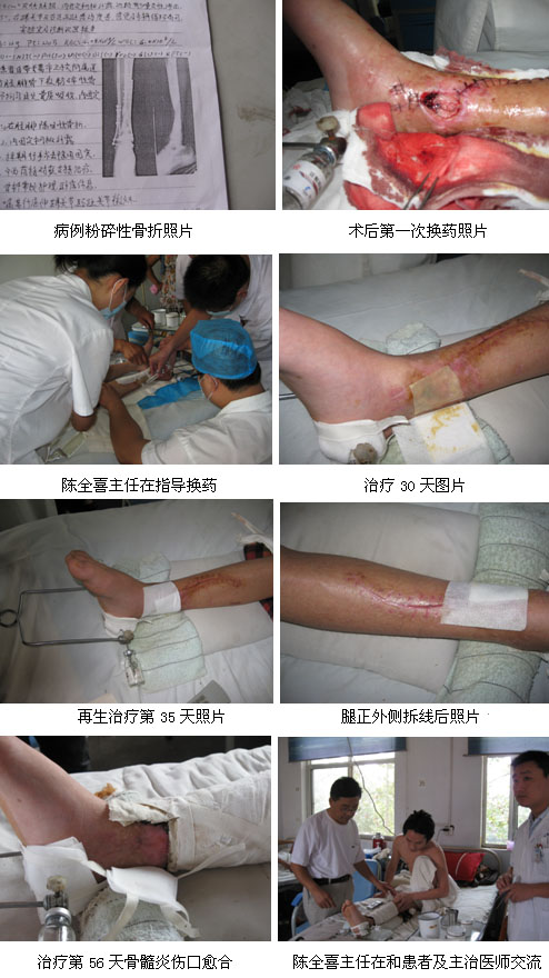中国中西医结合学会烧伤专业委员会委员陈全喜副主任医师在河南省许昌地区小铁路骨科医院与该院蒋彩云院长,李杰副院长,尚辉医师共同携手成果治愈了1例慢性骨髓炎患者。现报告如下: