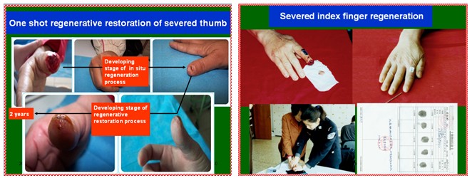 在临床实践中,我们用再生物质已经启动了皮肤等多器官组织缺损的再生复原,所以用再生物质也能启动和培养各器官的再生,这就又形成了新的生命定律。
