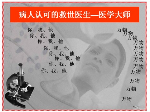 当医生不单是搞技术研究,我们手里掌握一门和多门的技术,如再生复原的技术,可以救治更多的患者,你就是医学大师。很简单的一个疾病,没人能治愈,但是到你手里就给患者治愈了,你就是医学大师。不能只要名气,但一个病都治不好,那会让人看不起。当医生就要讲究手里掌握顶级的治愈技术,就是当今最前沿的治愈技术,疑难疾病在你手里治好了,你就是一代英明的医学大师。采用再生复原医疗技术治疗烧伤创疡,目前在杂志上发表了76种创疡病,那么你们就是76位大师,一个委员一个大师,治疗创疡病大家都不成问题。如果我们每人都能够掌握1个~2个疾病的解决办法,就自然成为患者爱戴的医学大师了。