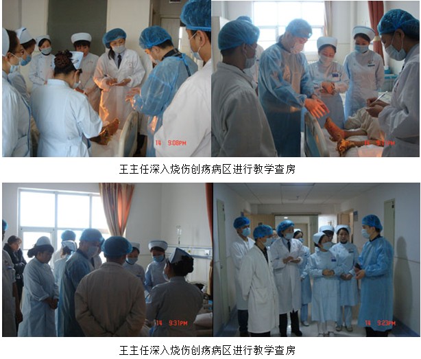 2013年4月15日上午9时,王主任应邀再次来到该医院烧伤创疡手外科病房对在该科室住院的烧伤创疡患者进行教学查房,并应邀亲自为1例双足及小腿深度烧伤患者进行清创换药,向该科室的医护人员展示再生医疗技术规范的创面清创换药技术,带教结束后,王主任在该科室会议室又对该科室的医护人员进行再生复原疗法在特重度烧伤系统治疗要点进行技术培训和交流。通过此次培训,该科室的全部医护人员基本掌握了再生医疗技术的规范化操作,对该科室的发展起到了重要作用。
